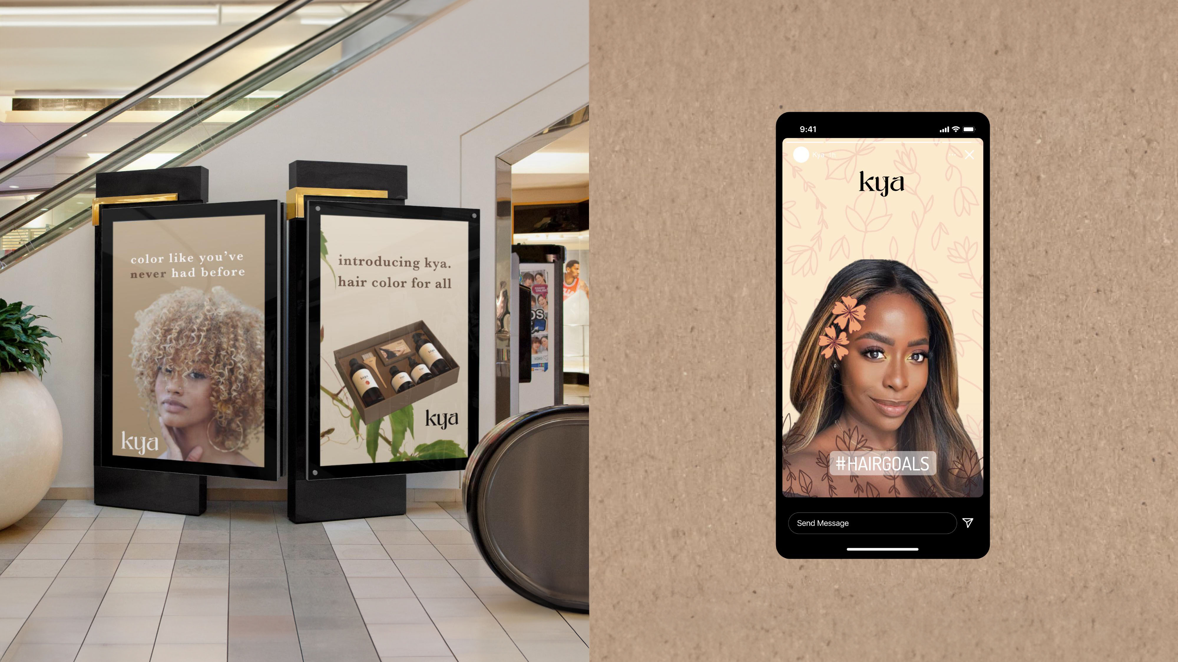 We envisioned how the brand would appear in the real world - from billboards to pop-up color bars. We created physical and digital marketing materials for both brands, strategically designing for our two distinct target consumers. KYA showed up in malls, targeting middle aged women of color on Instagram, while SELFE presented itself at music festivals and TikTok ads to grab the attention of Gen Z youths.