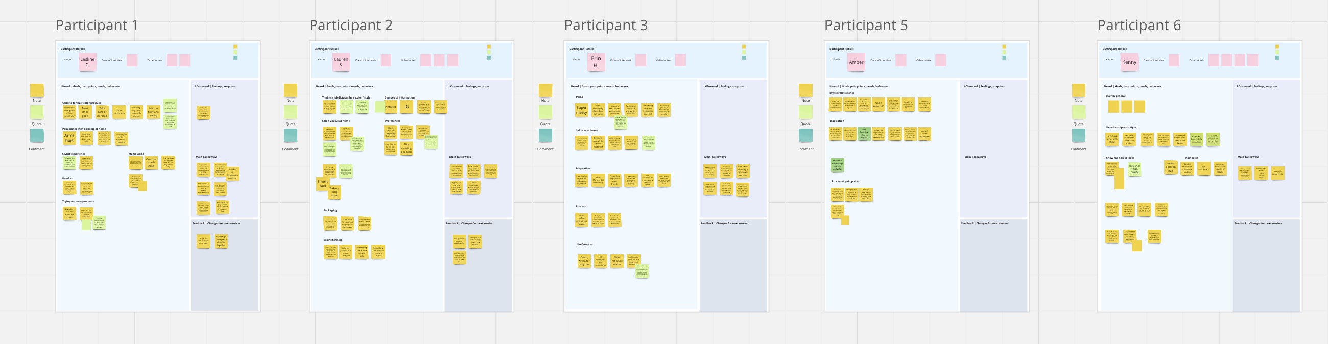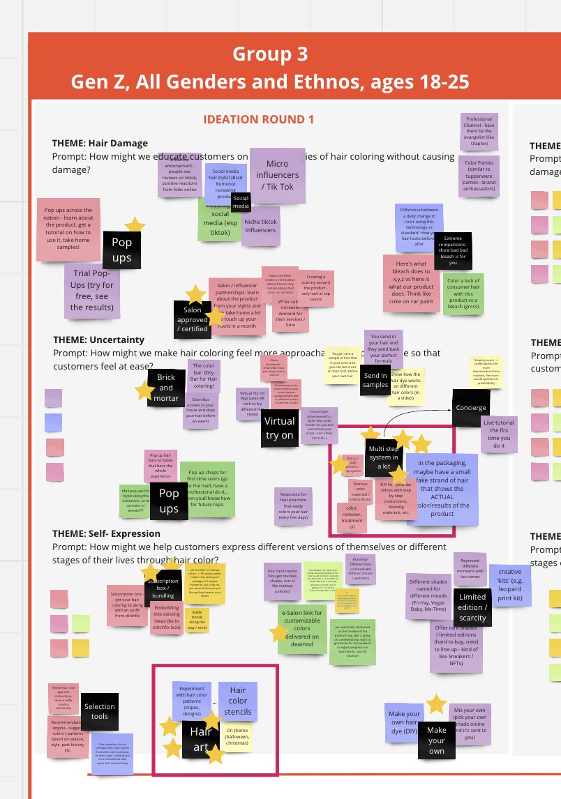 The user research focused on uncovering hair coloring behaviors, motivations, and unmet needs of target consumers. Through rounds of thoughtful synthesis for each participant, deeper insights and understanding were uncovered.