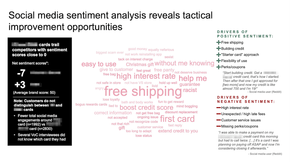 • Comprehensive set of insights of customer/cardholder's needs and current pain points